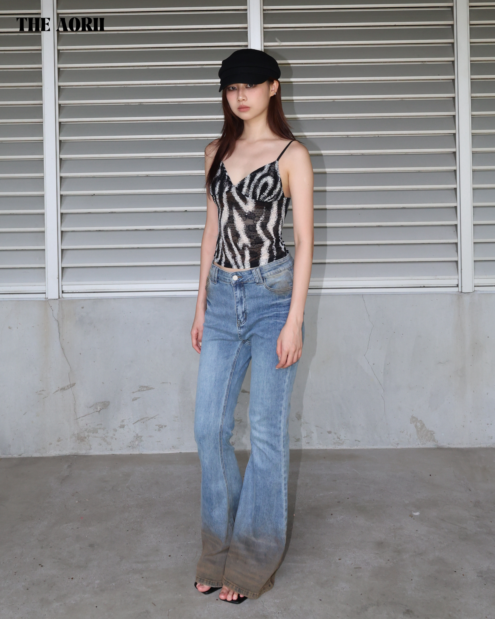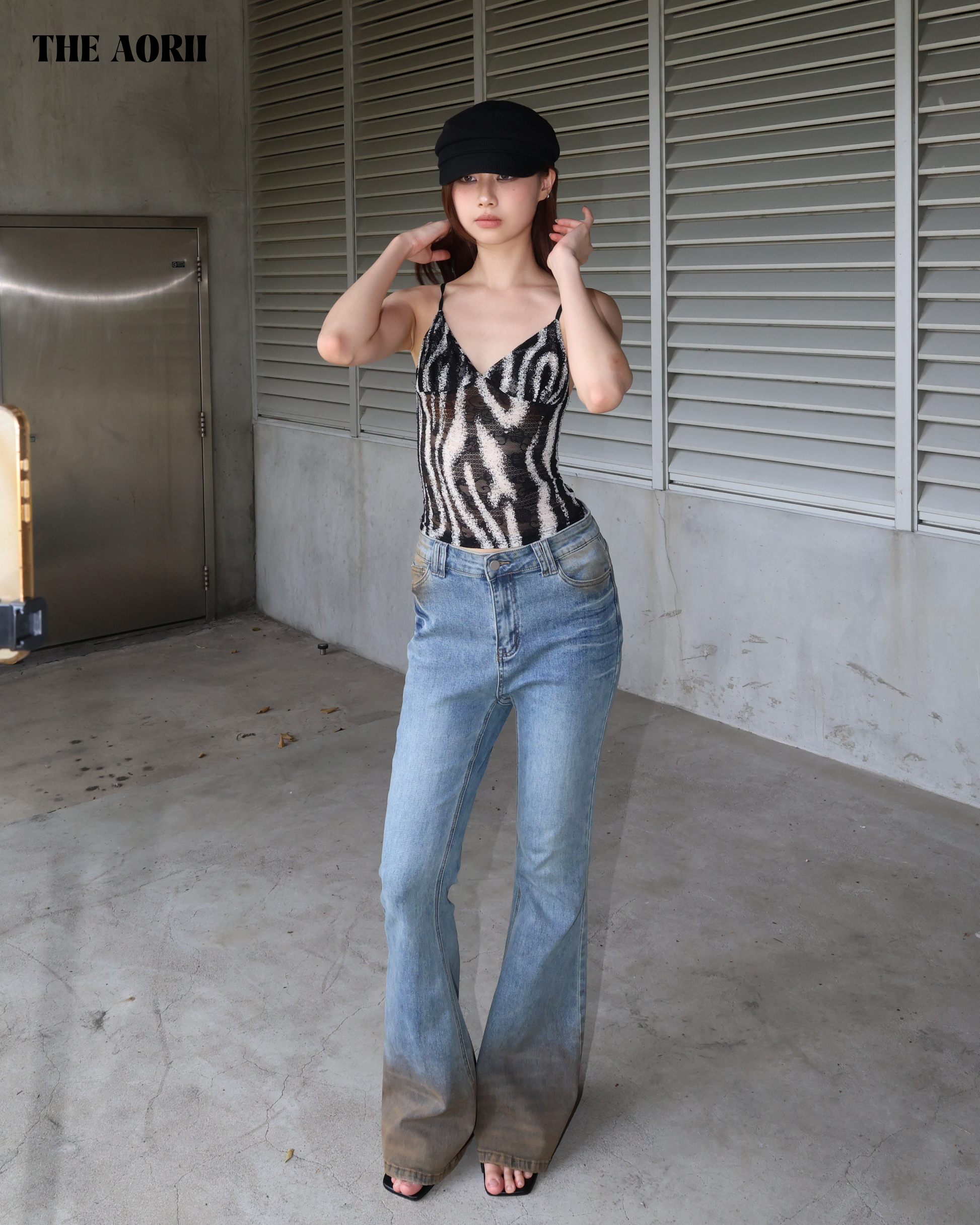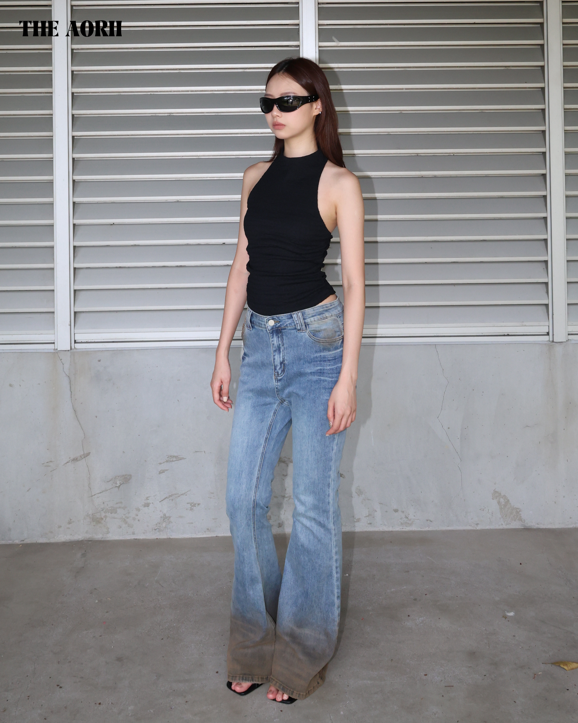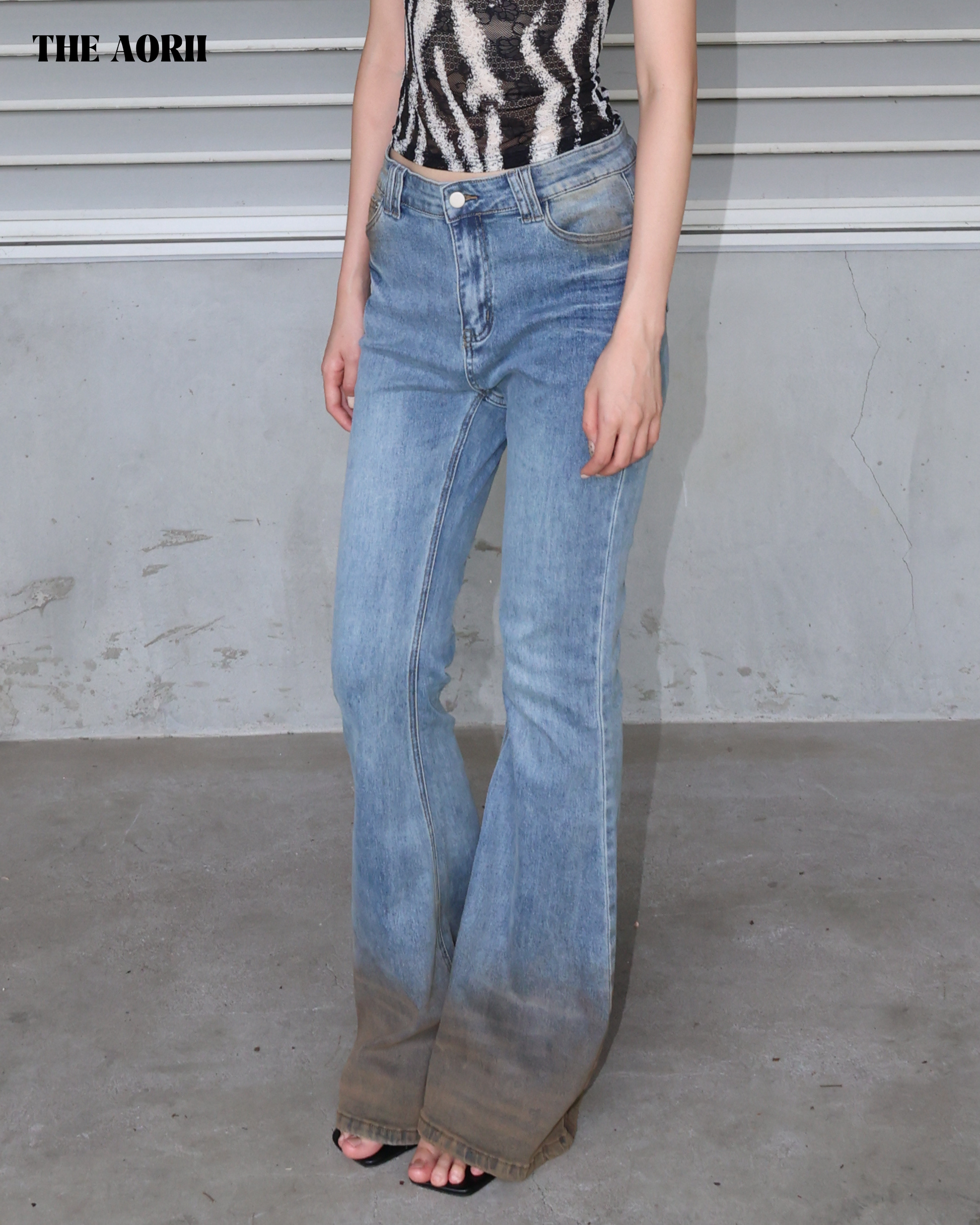 20203 - 做舊彈力中腰微喇落地牛仔褲