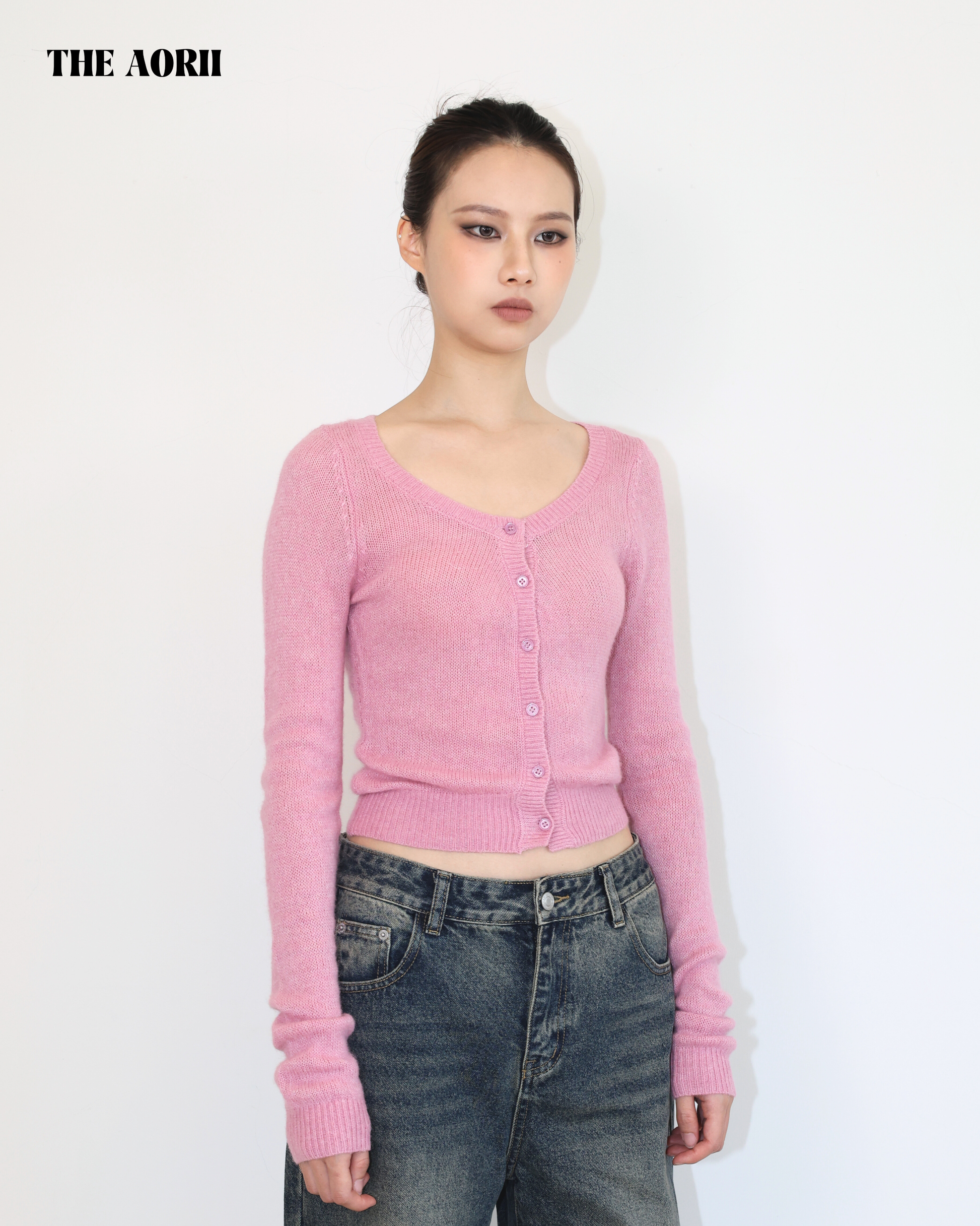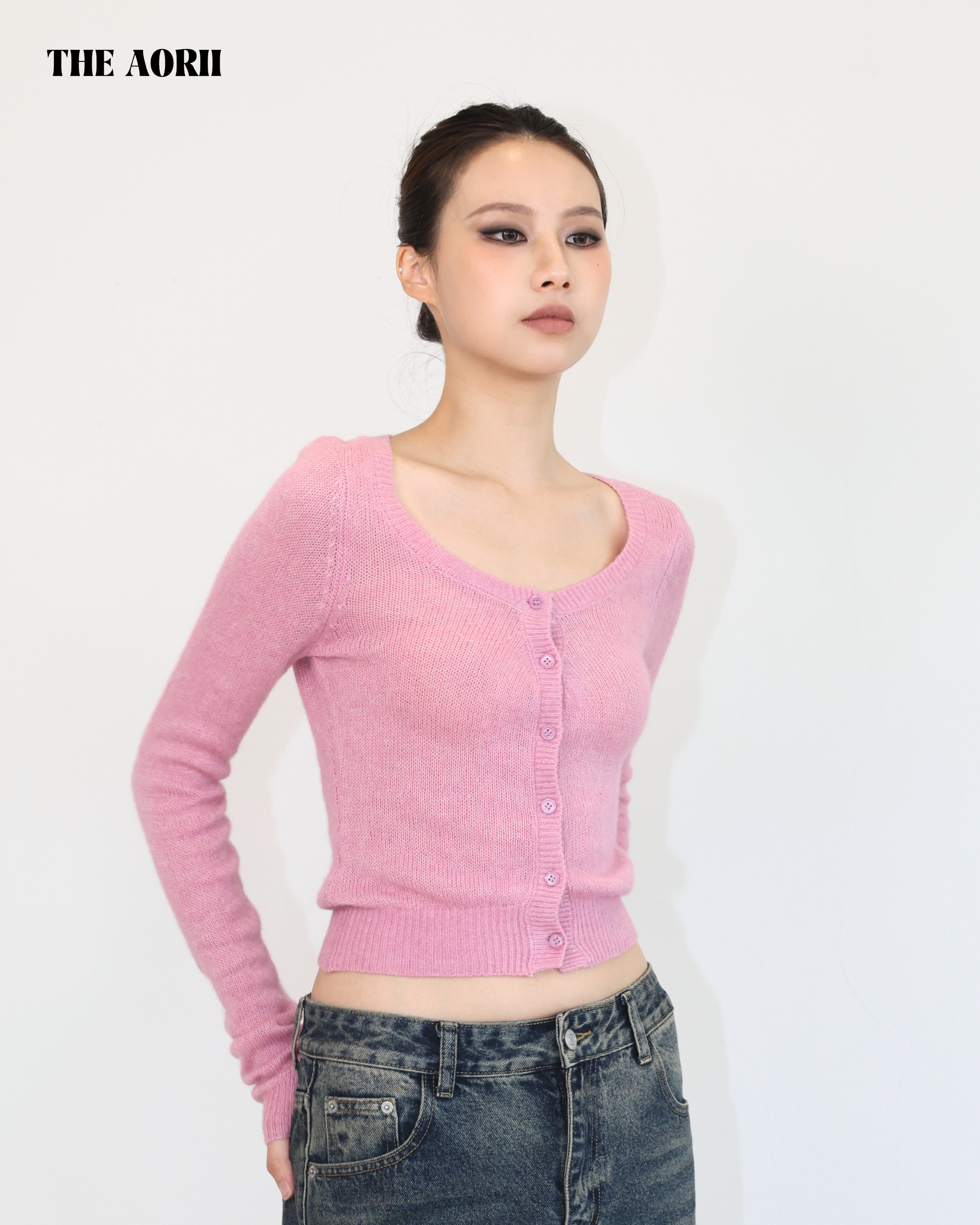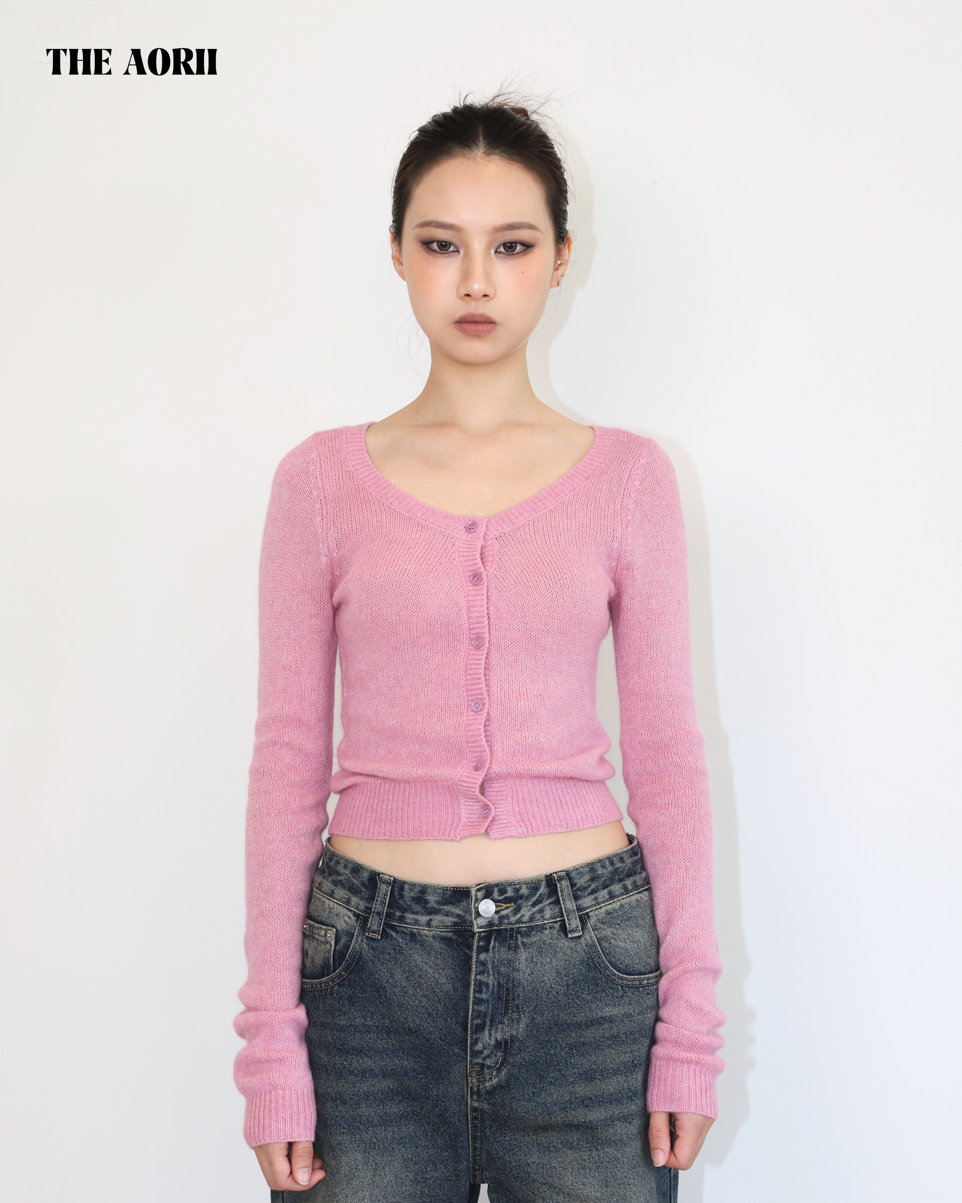 20214(3color) - 粉 羊毛排扣針織長袖上衣