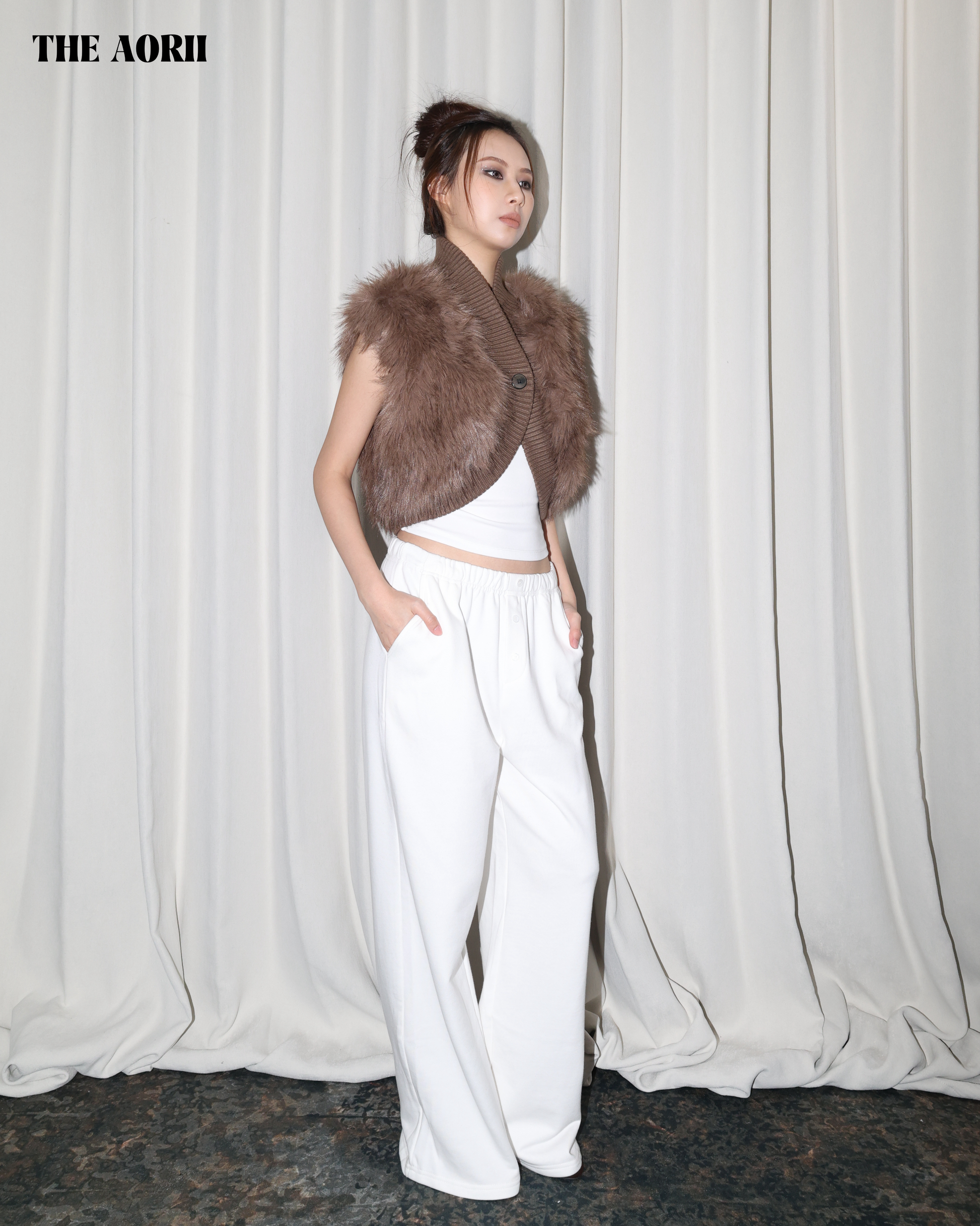25229(2color) - 白 假排扣棉褲
