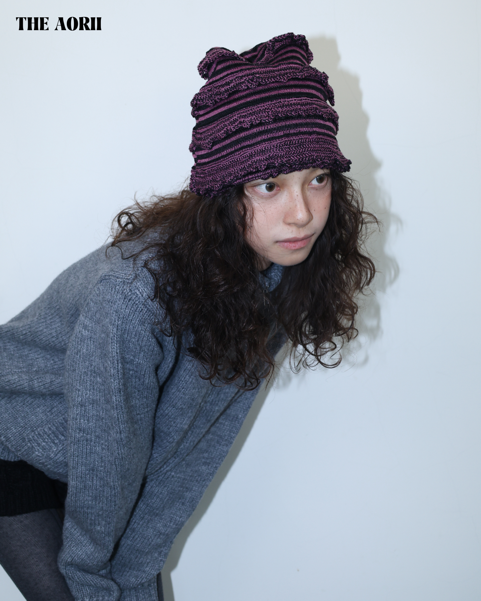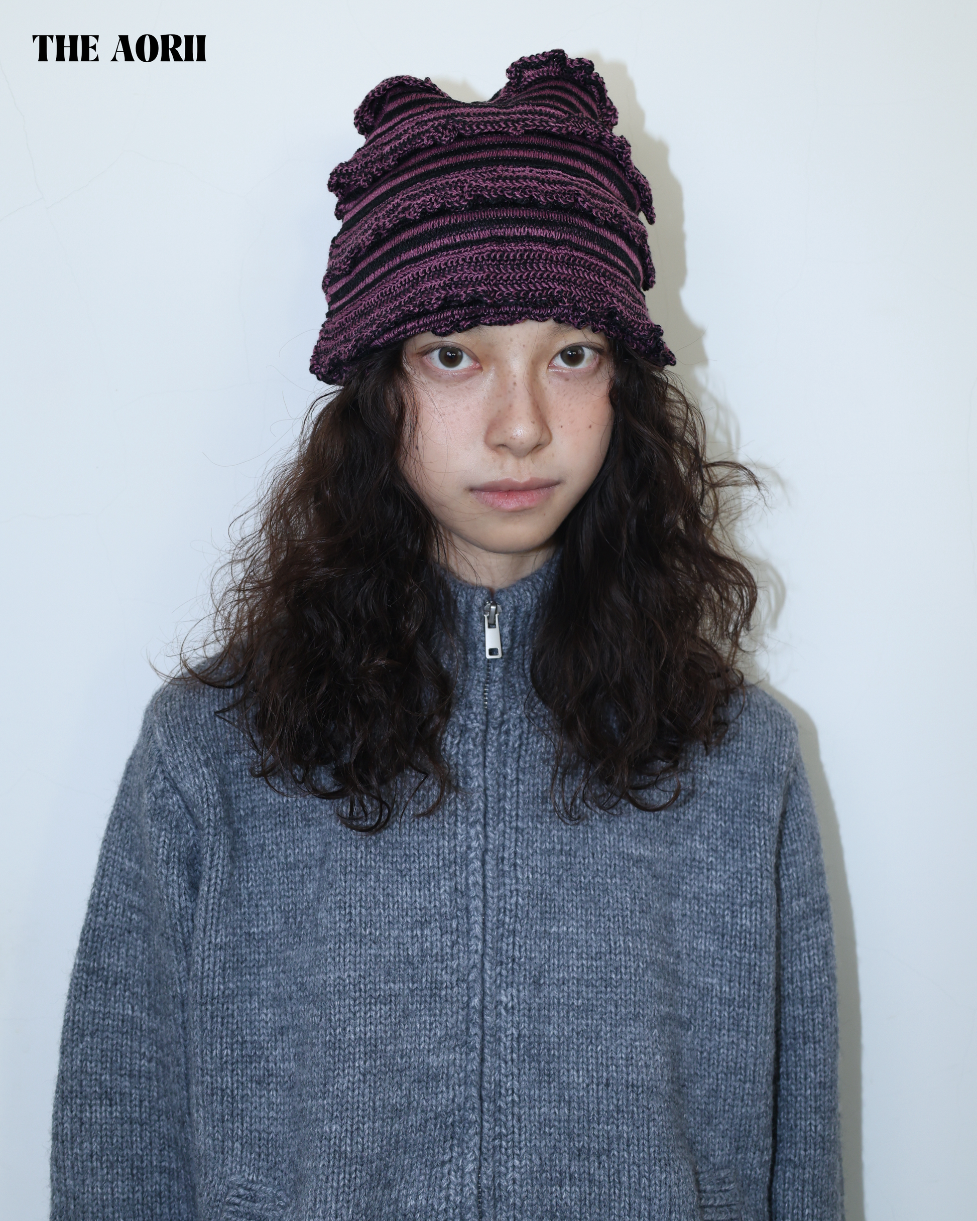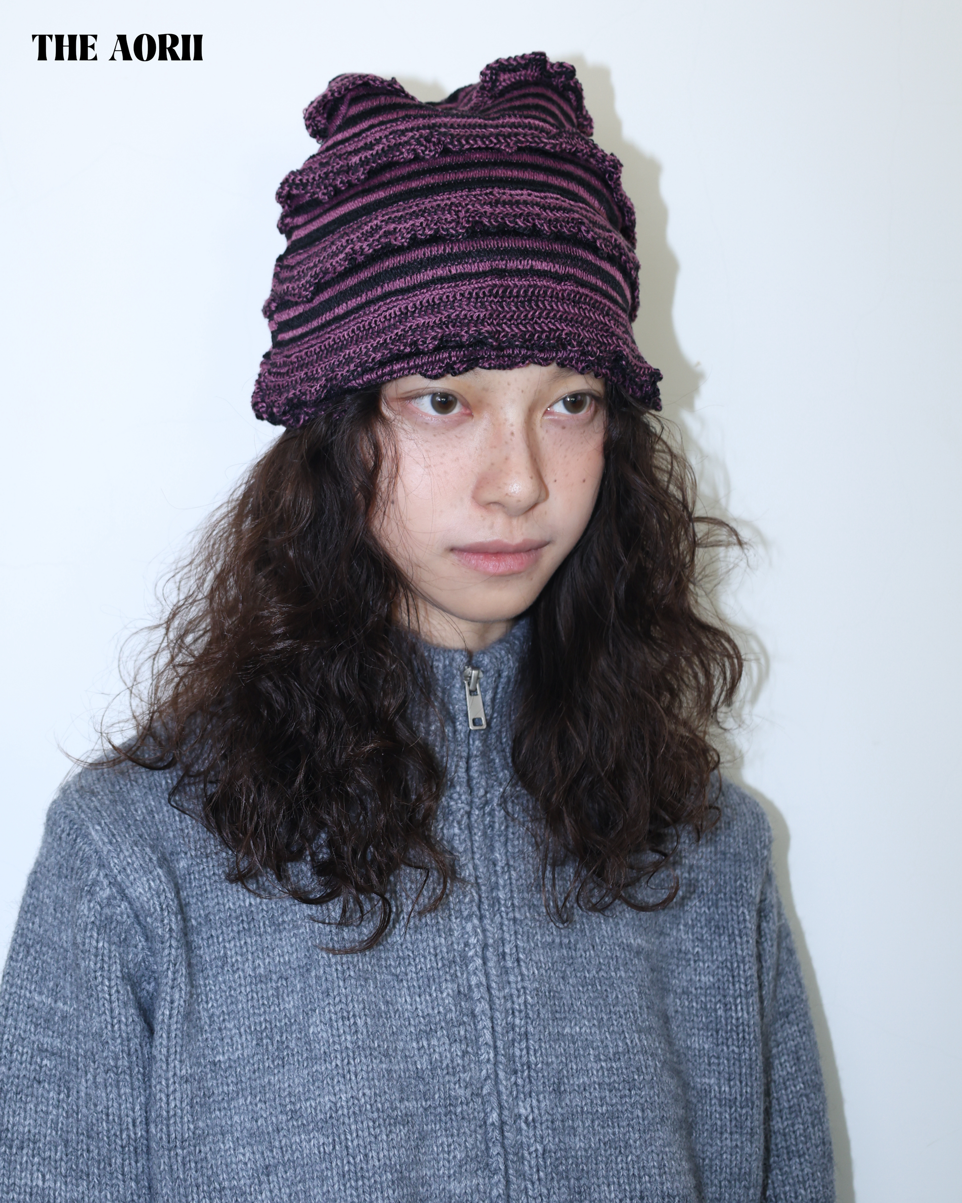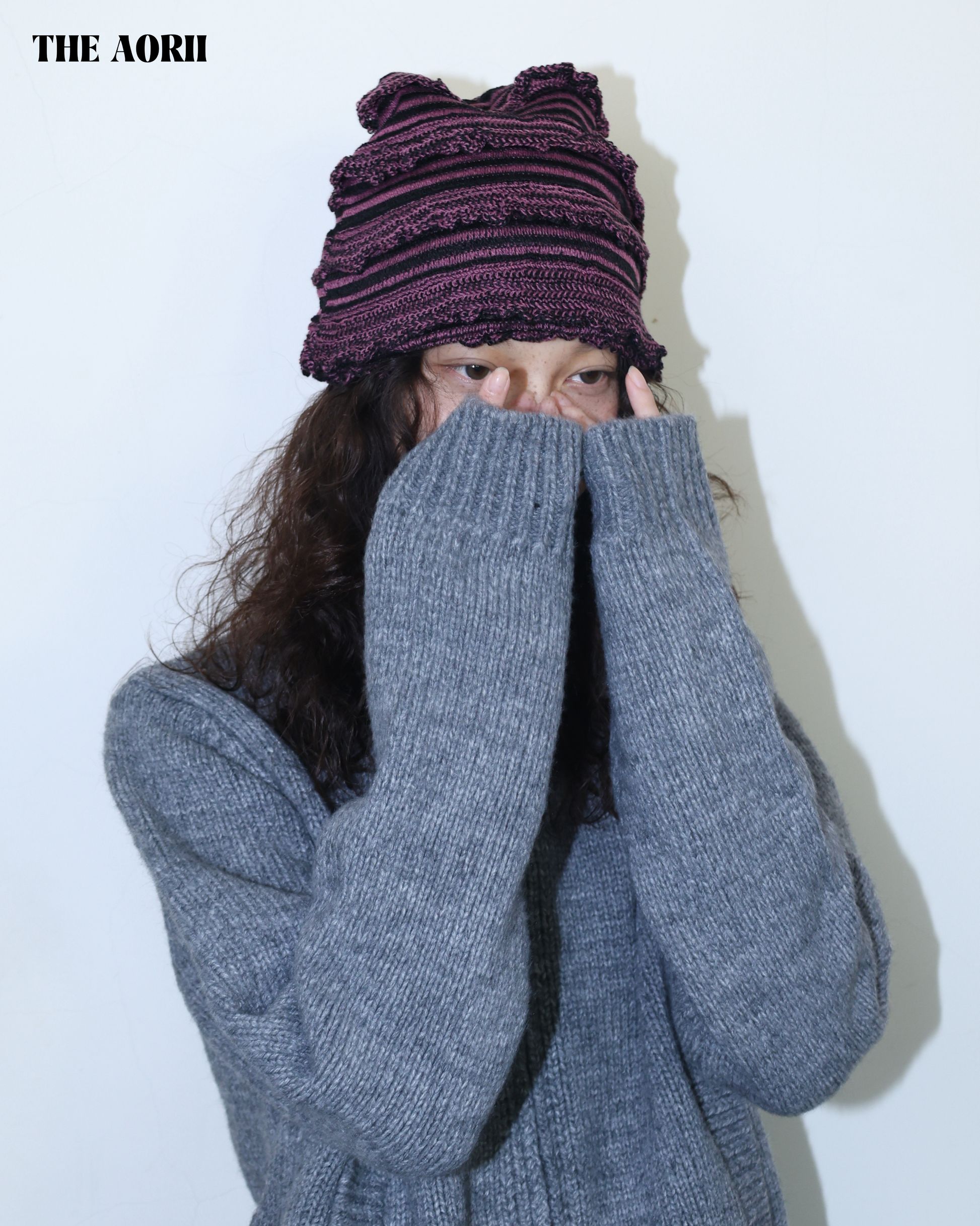 25274(3color) - 粉 30%羊毛條紋針織帽