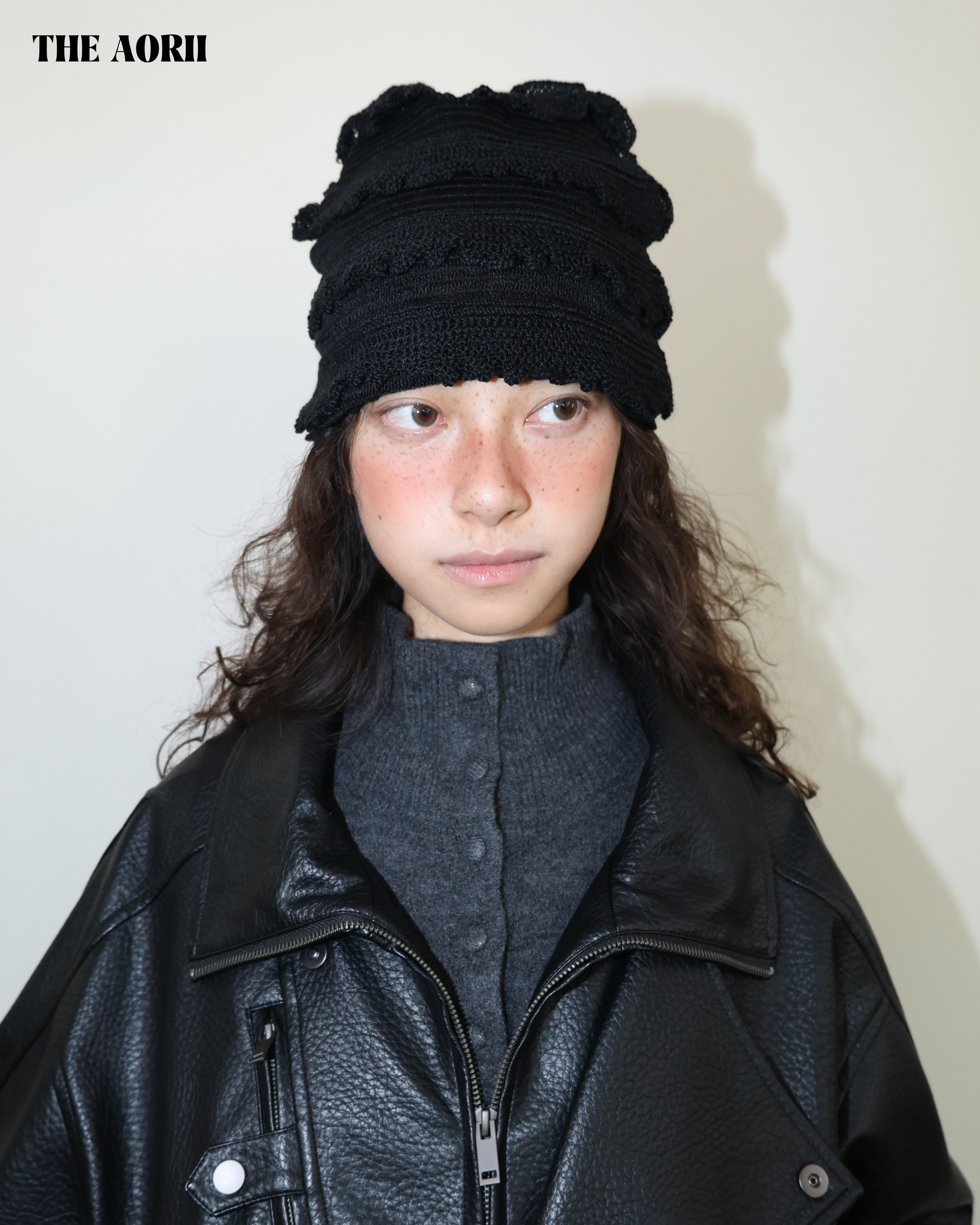 25274(3color) - 黑 30%羊毛條紋針織帽