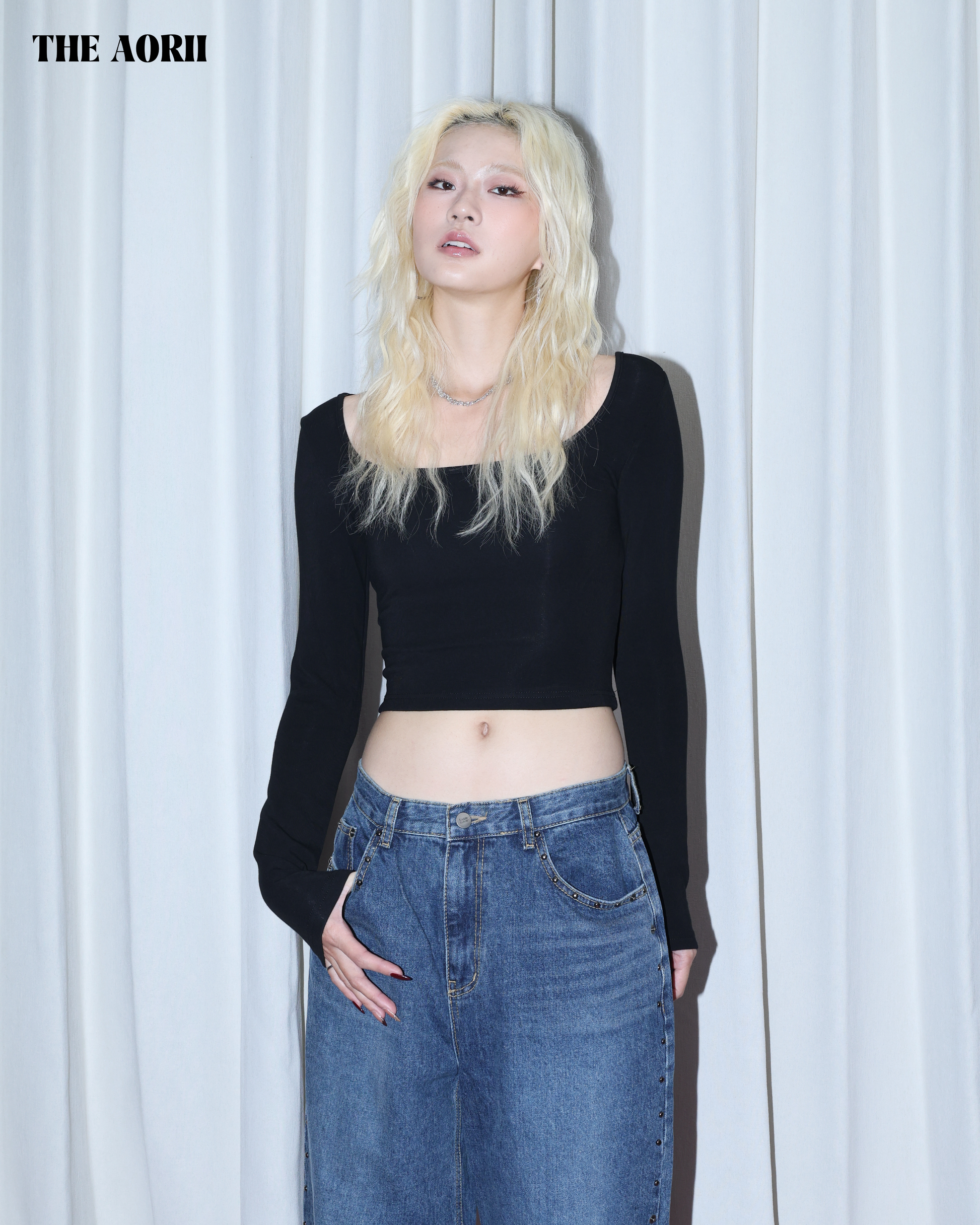 25277(4color) - 黑 方領修上刷毛長袖上衣(薄款)
