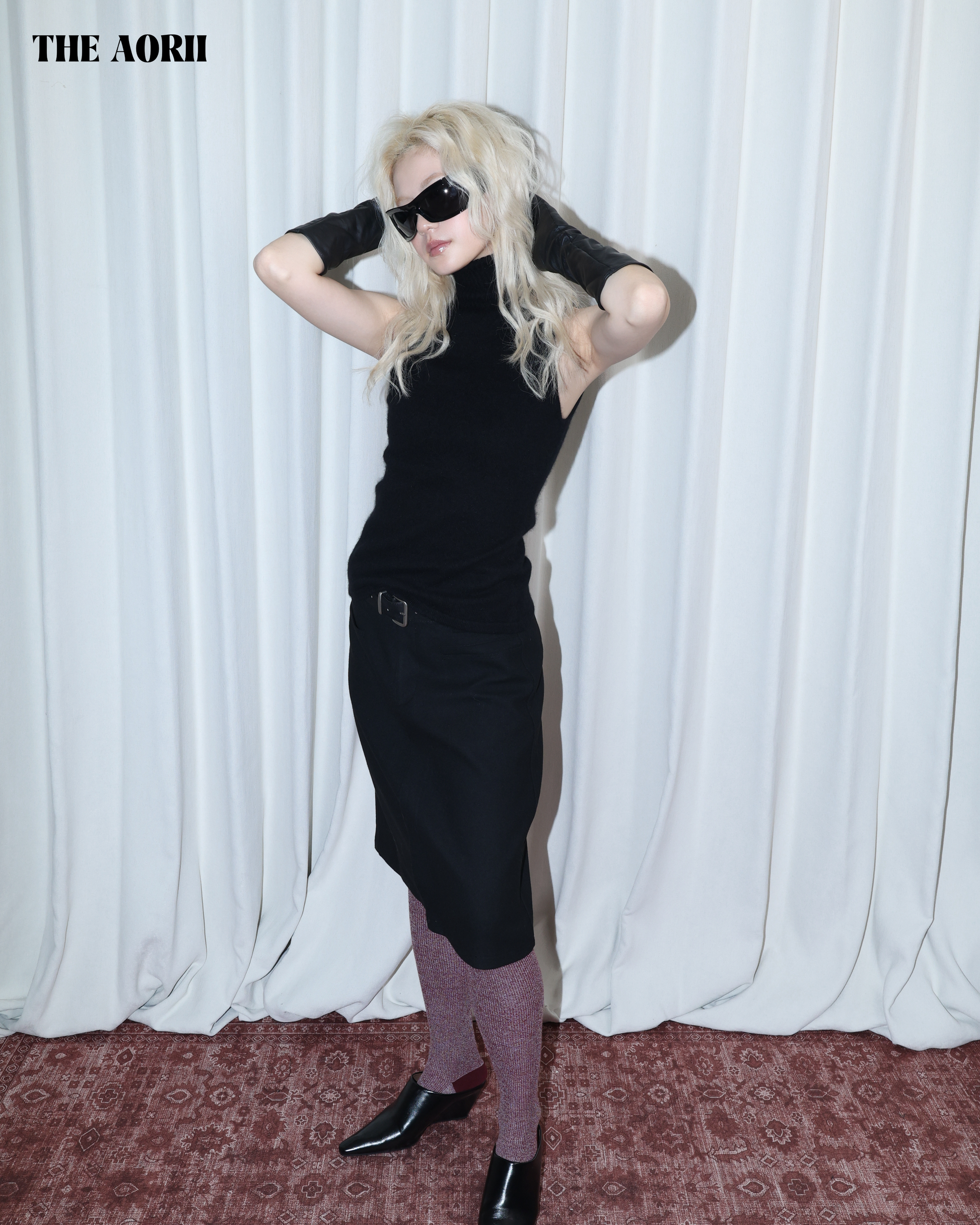 26014 (3color) - 黑 30%浣熊絨小高領削肩背心