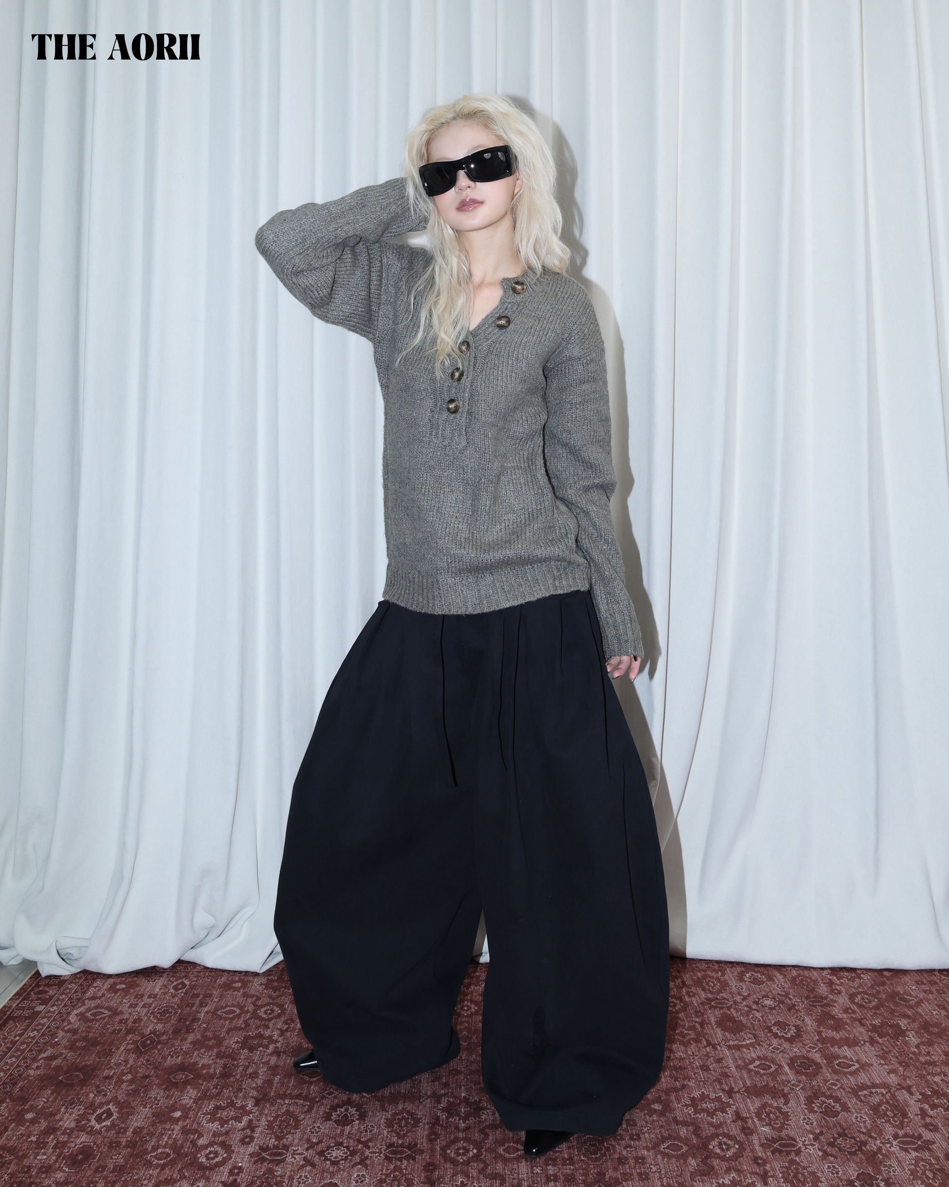 26017 - V領排扣針織長袖上衣