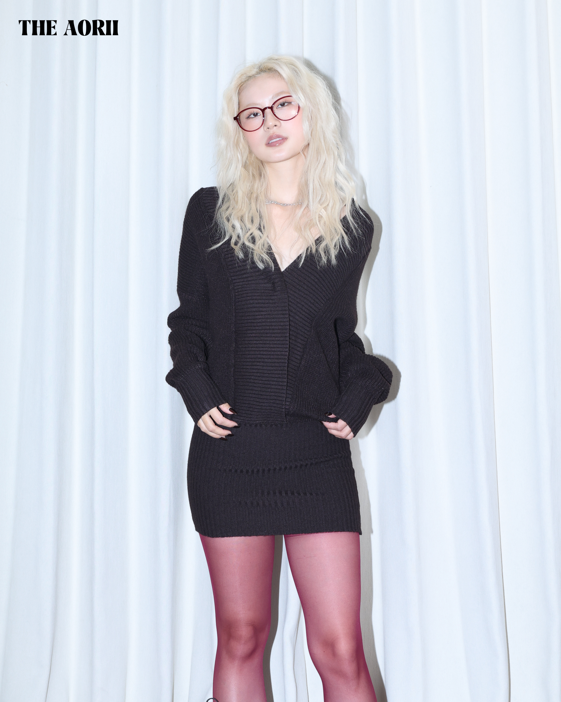 26019 (3color) - 棕 6%羊毛V領針織毛衣包臀連衣裙