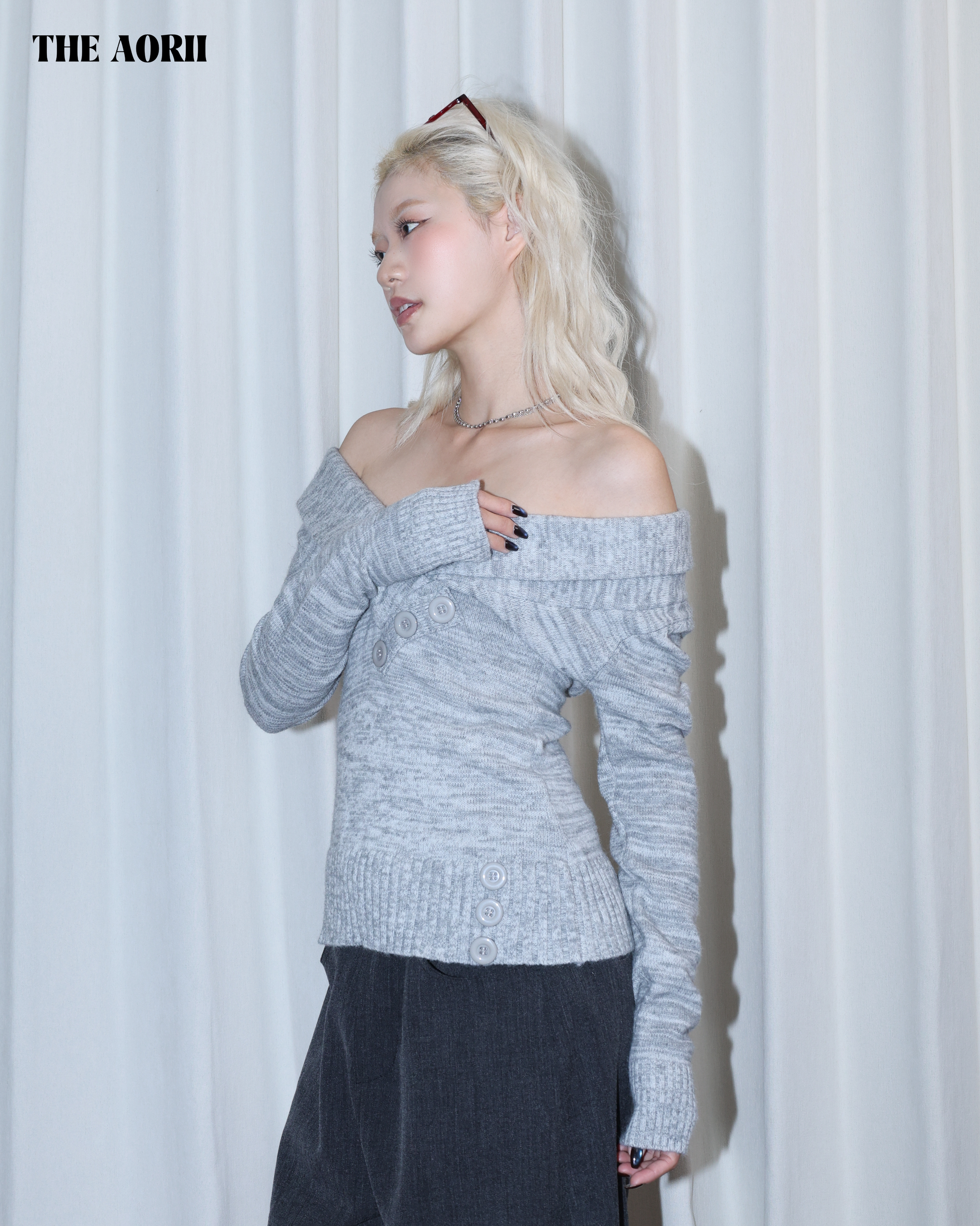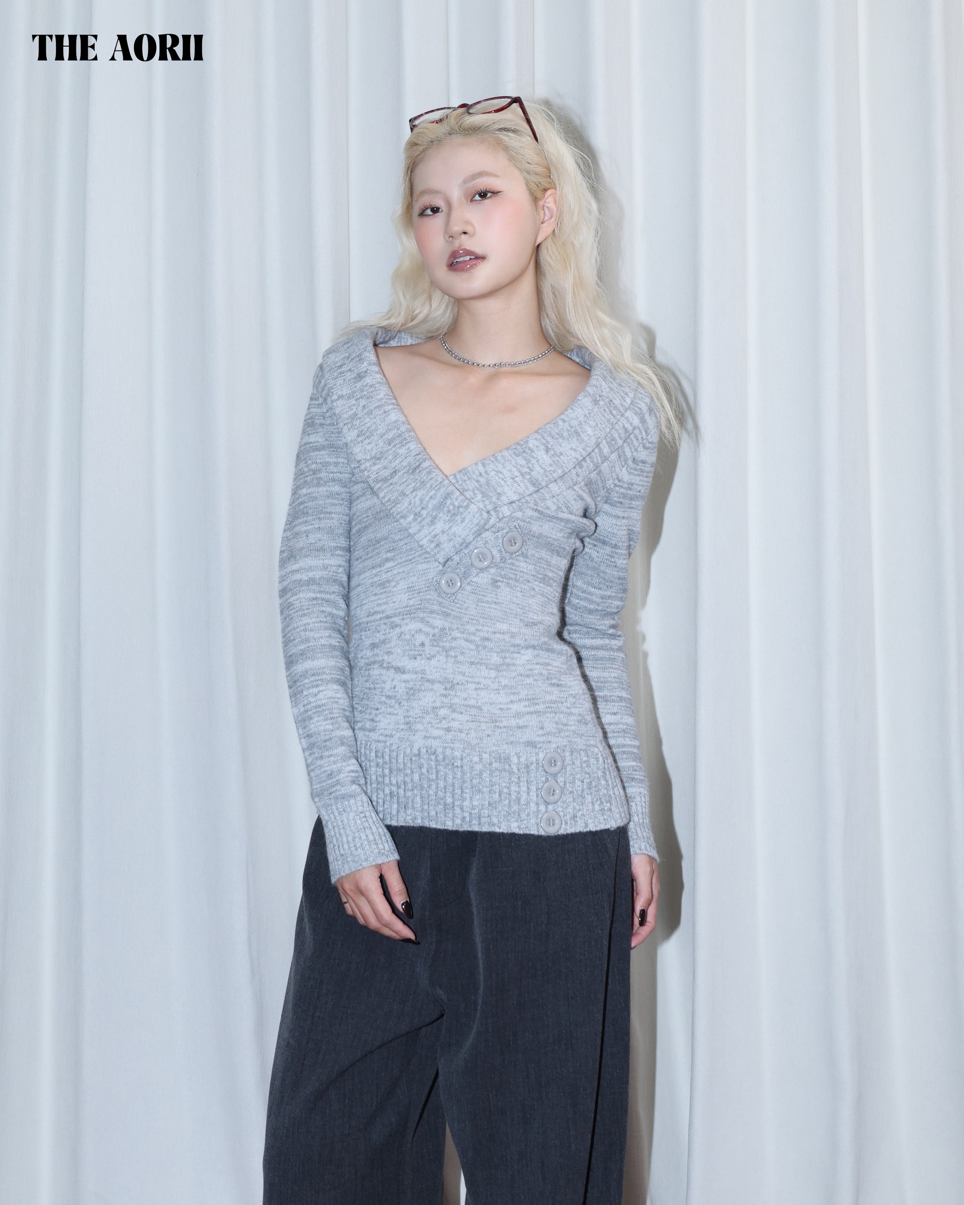 26028 - 復古V領鈕扣收腰上衣