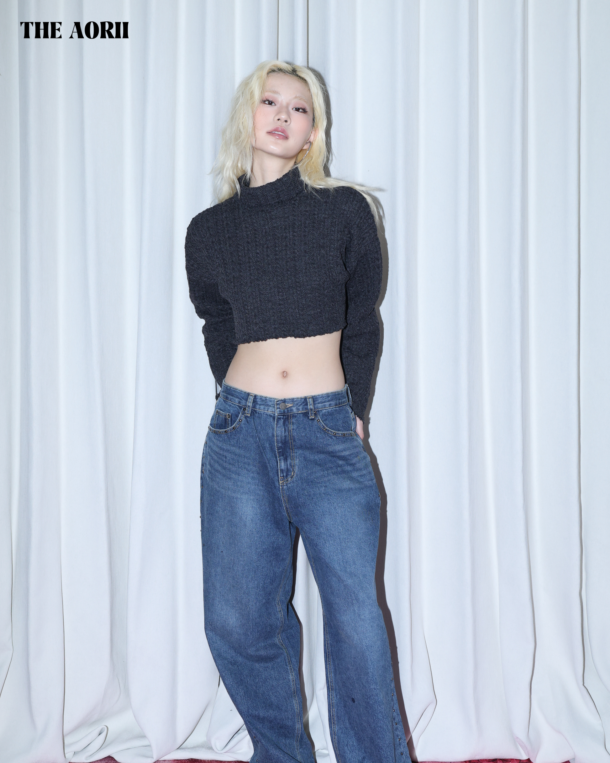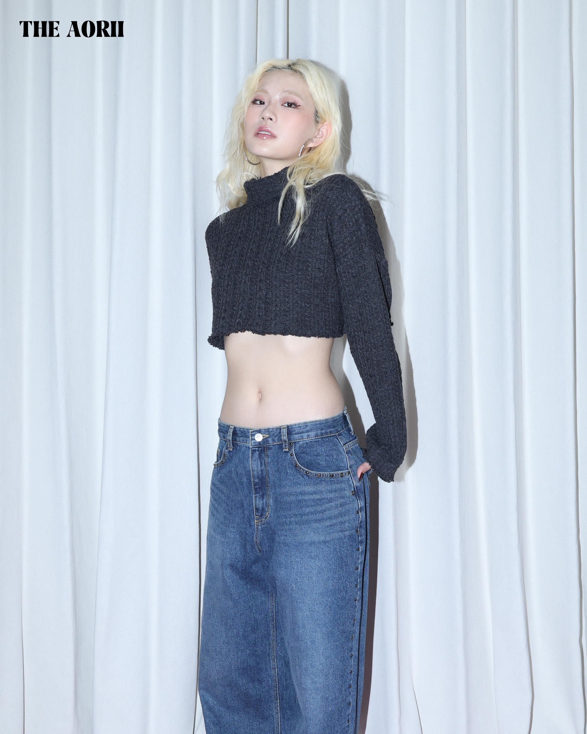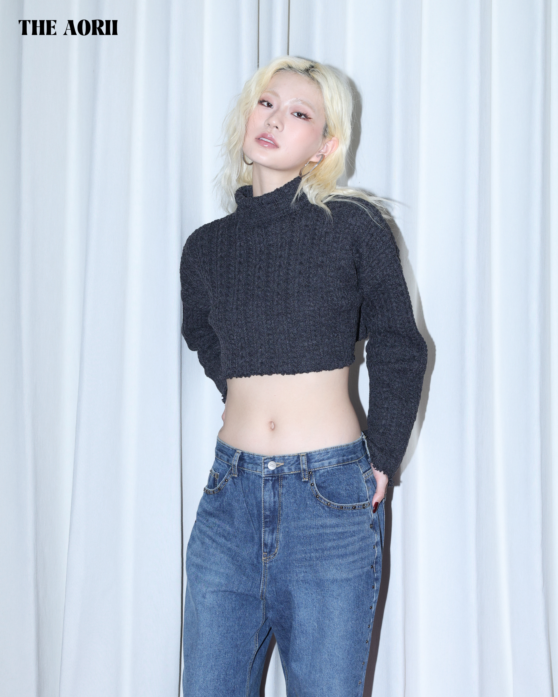 KR25003(2color) - 灰 "正韓"小高領短版針織上衣