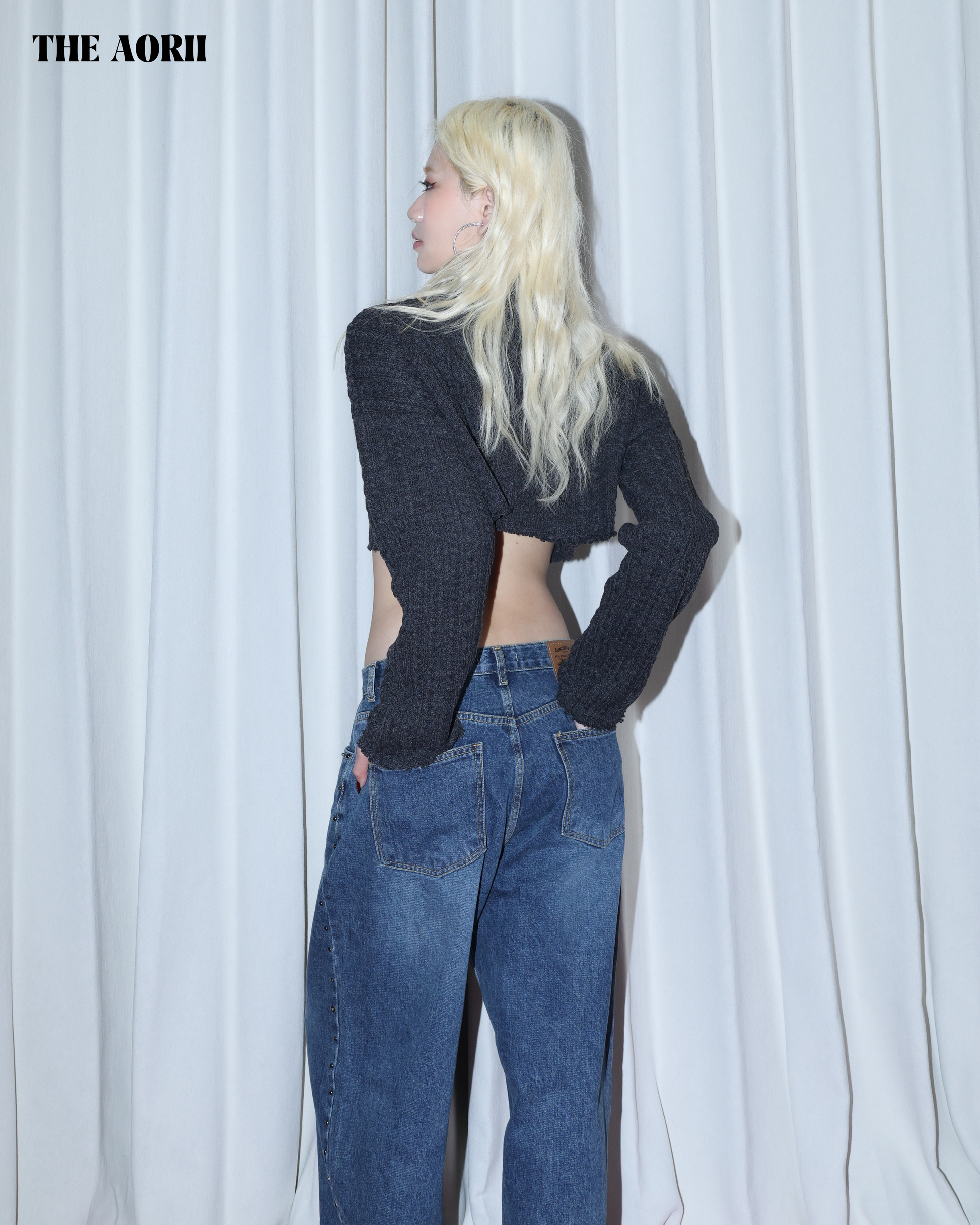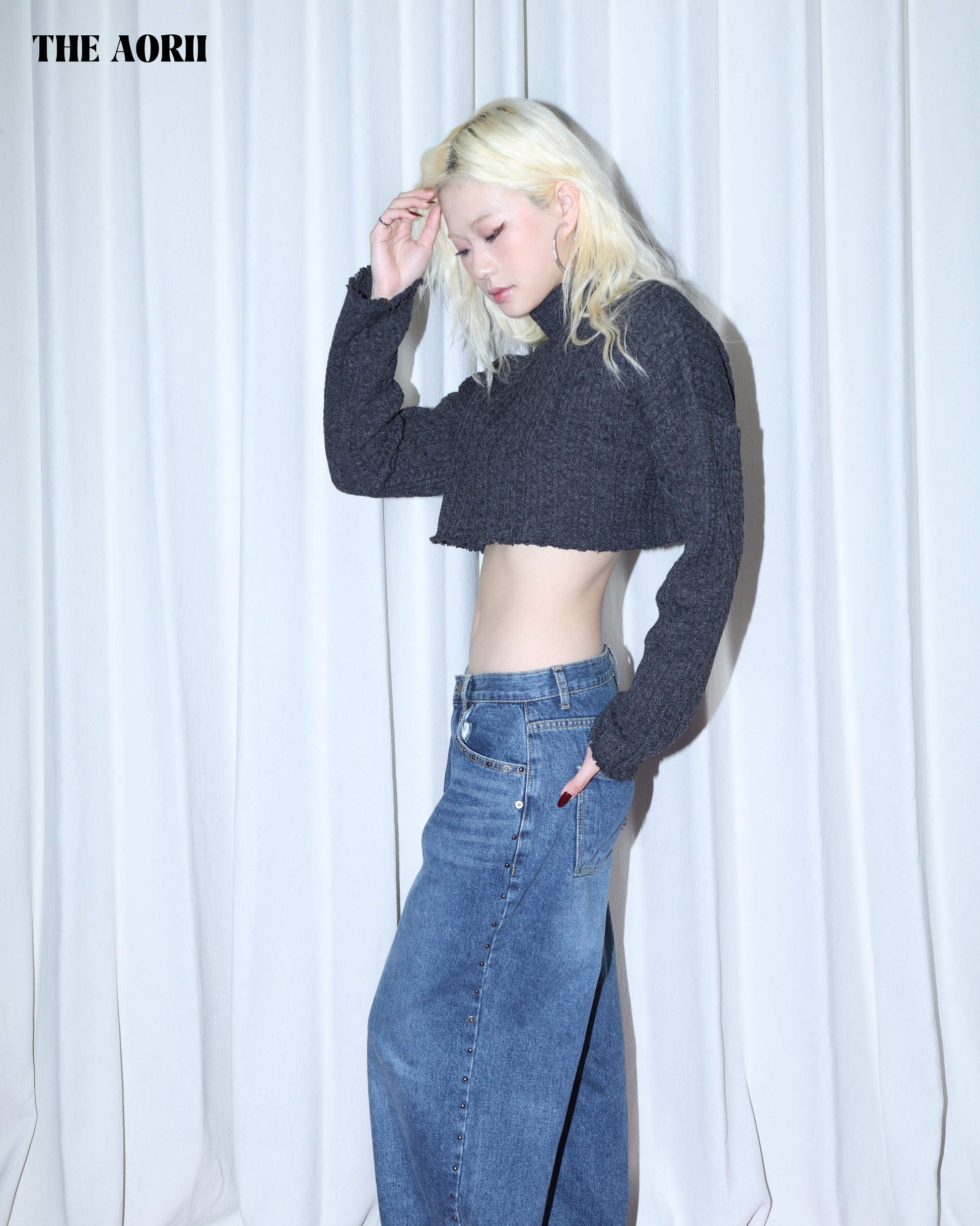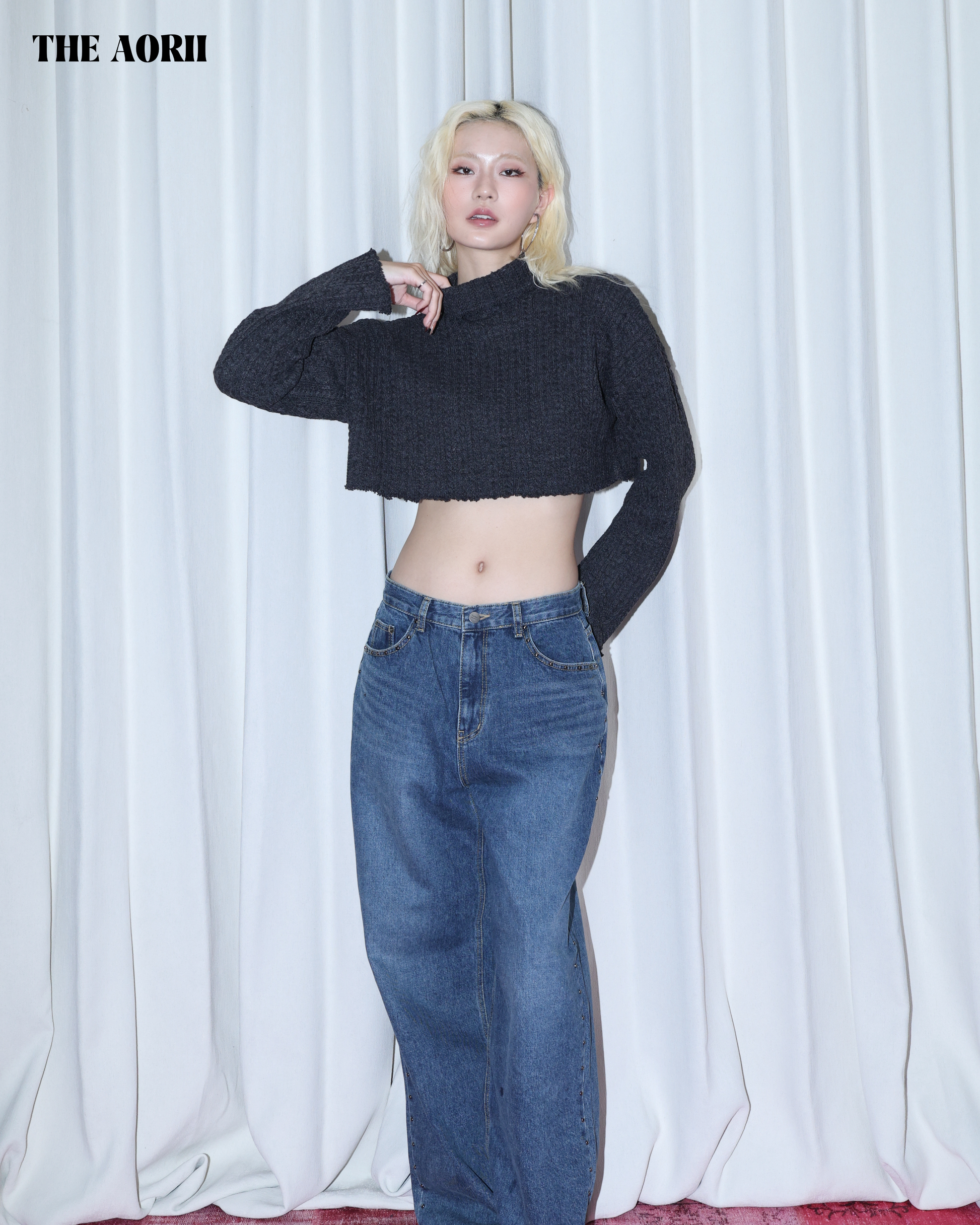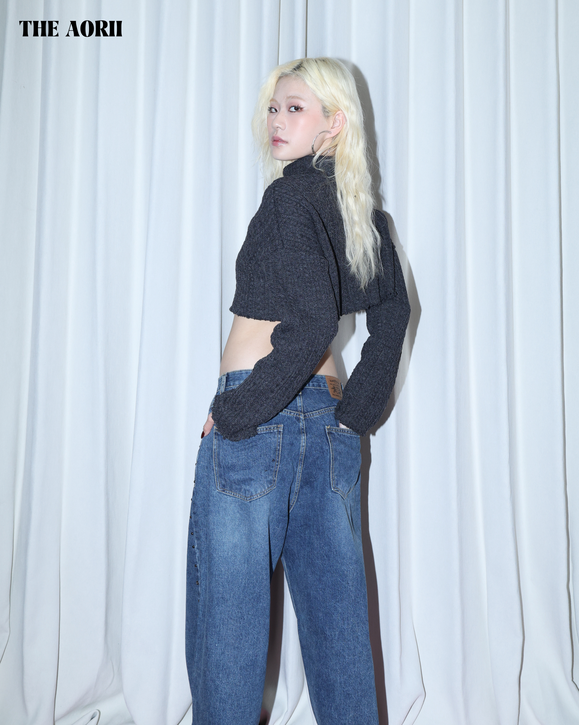 KR25003(2color) - 灰 "正韓"小高領短版針織上衣