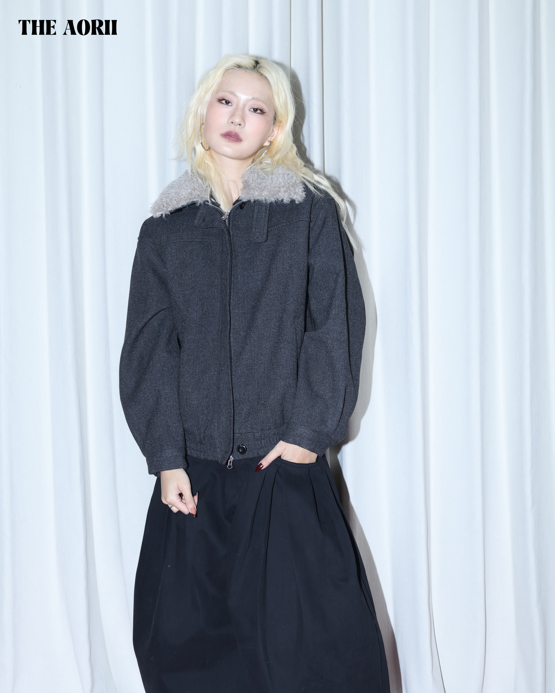 KR25011 - "正韓"毛毛拼接加厚夾克外套
